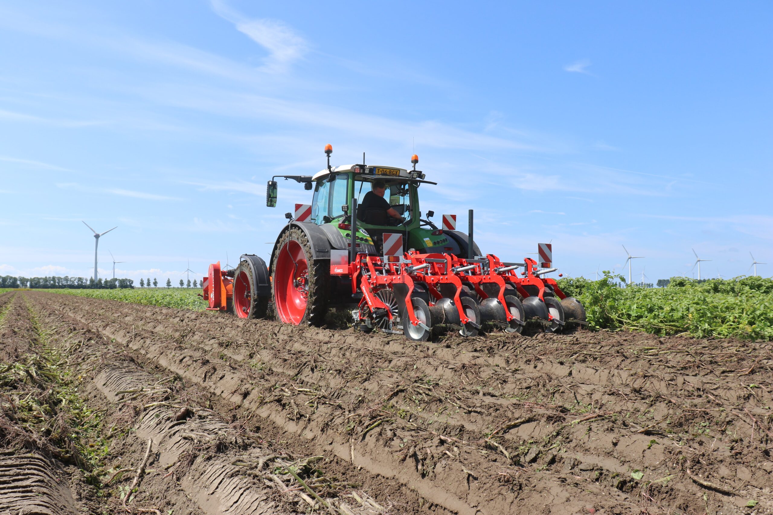 The Vegniek DiscMaster sets a new revolution in the field of haulm pulling in the potato industry. The new Vegniek haulm puller is capable of pulling haulm from the potato ridges with exceptional precision.