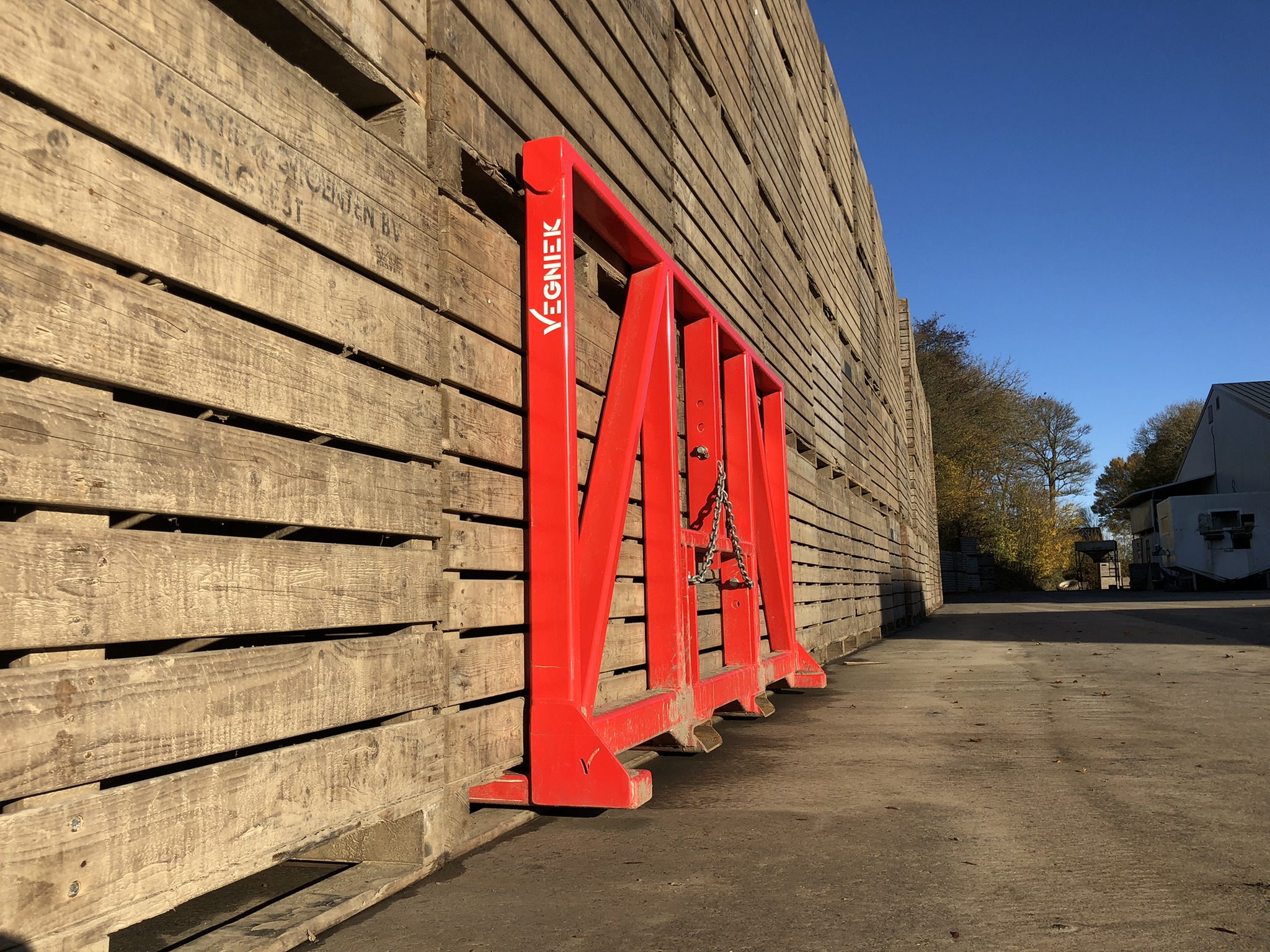 The Vegniek double box carriers are very robust. Ideal for safe and efficient box handling. Because the outer forks are slightly higher than the middle ones, the boxes stand firmly against each other during transport. With the box guide it is very easy to slide empty boxes against each other, using the side shift of the forklift. With the double box carriers it is also possible to load and unload trucks from one side.